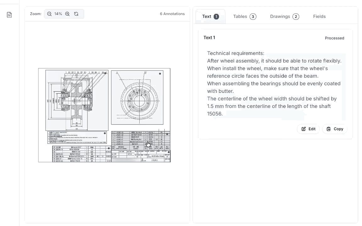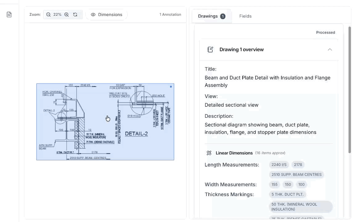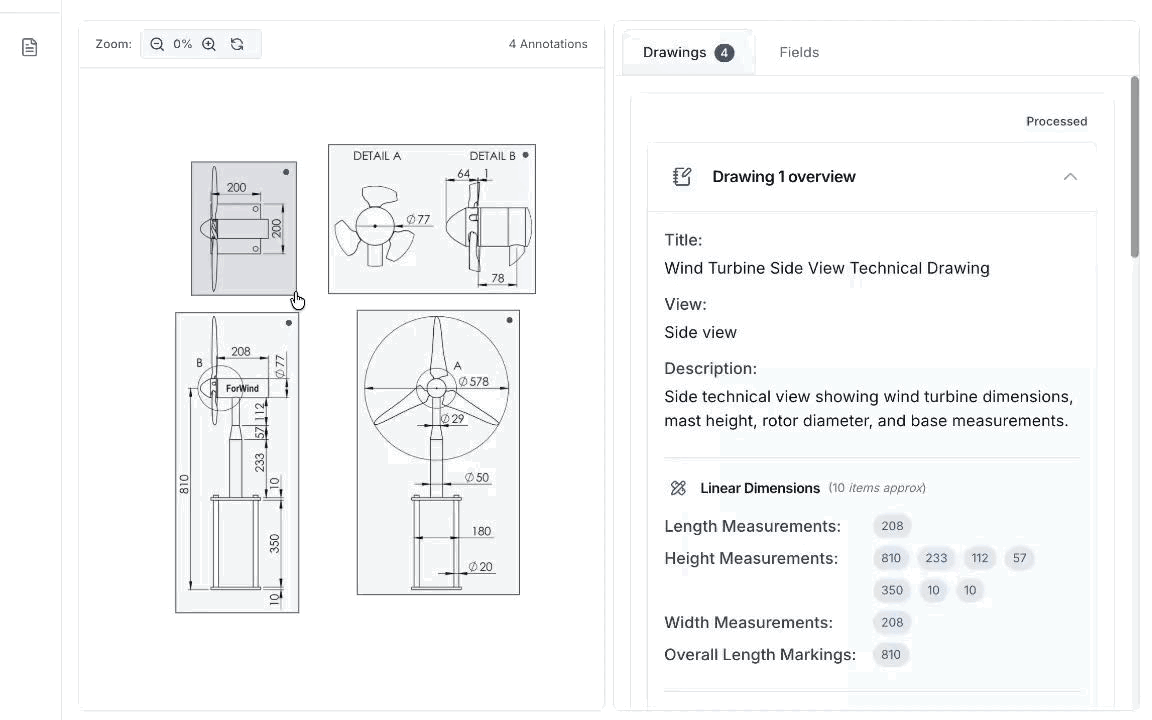Extracting dimensions with abbreviations filtering and confidence-scored outputs from engineering drawings at scale.